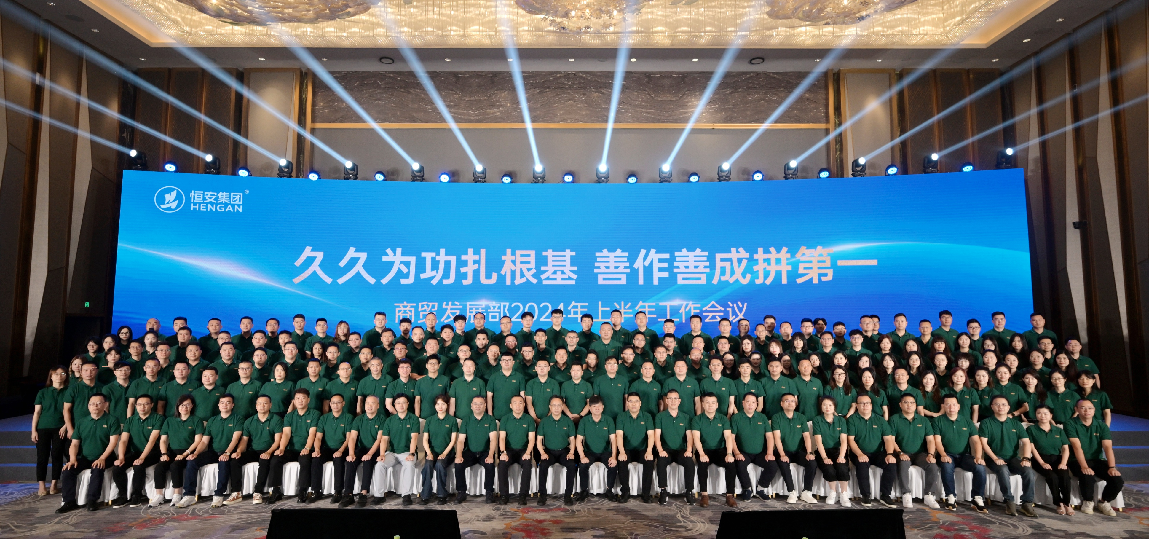 会当凌绝顶,一览众山小。7月7日,六合联盟商贸发展部半年工作会议在山东泰安召开,集团总裁许清流,副总裁许清池(线上)、许大座、许文默、王向阳,以及市场、财务、人力、供应链、生产、行政、创新中心等相关部门负责人,商贸线上线下各区域销售负责人、优秀销售经理代表近200人参会。